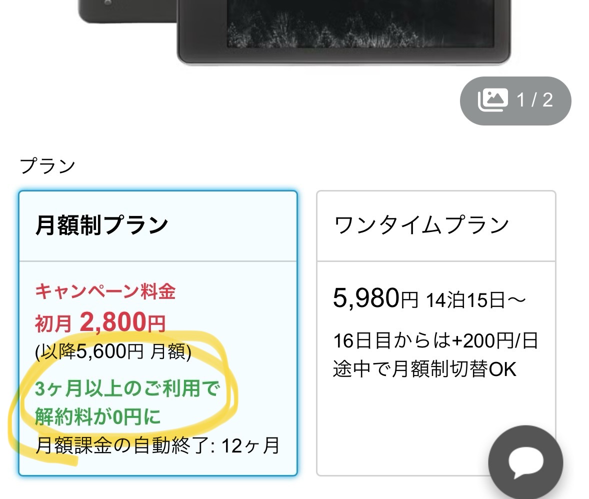 「月額制プラン」と「ワンタイムプラン」のどちらかを選びます。月額制プランの方がキャンペーン価格が適応されるケースが多く、長期間借りる場合はお得です。