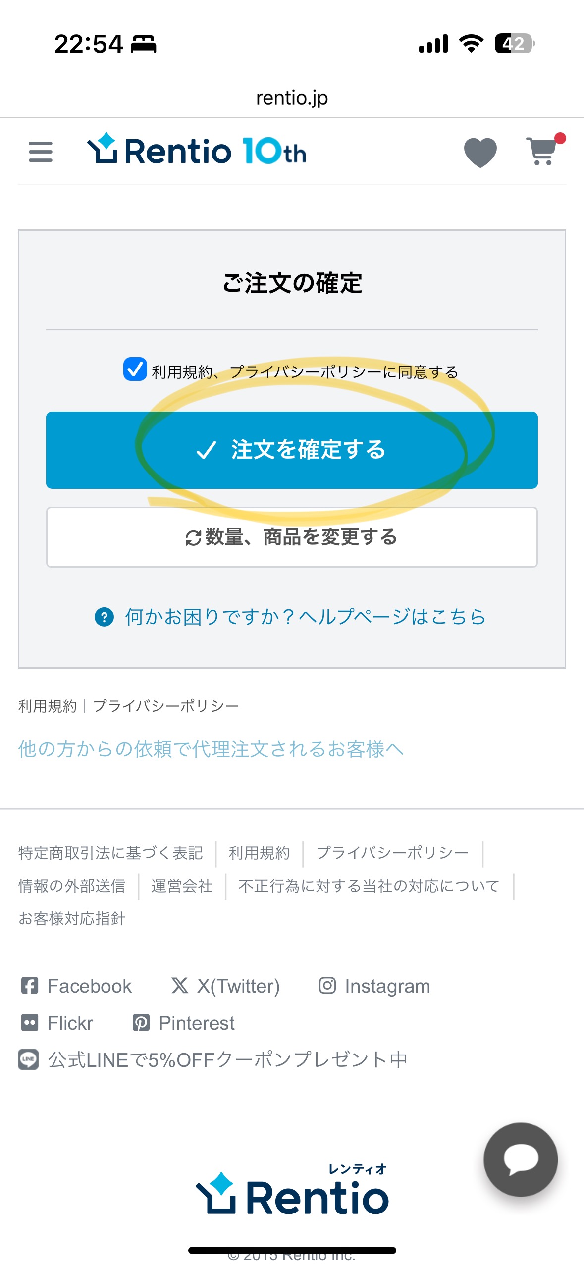 「注文を確定する」をタップして、