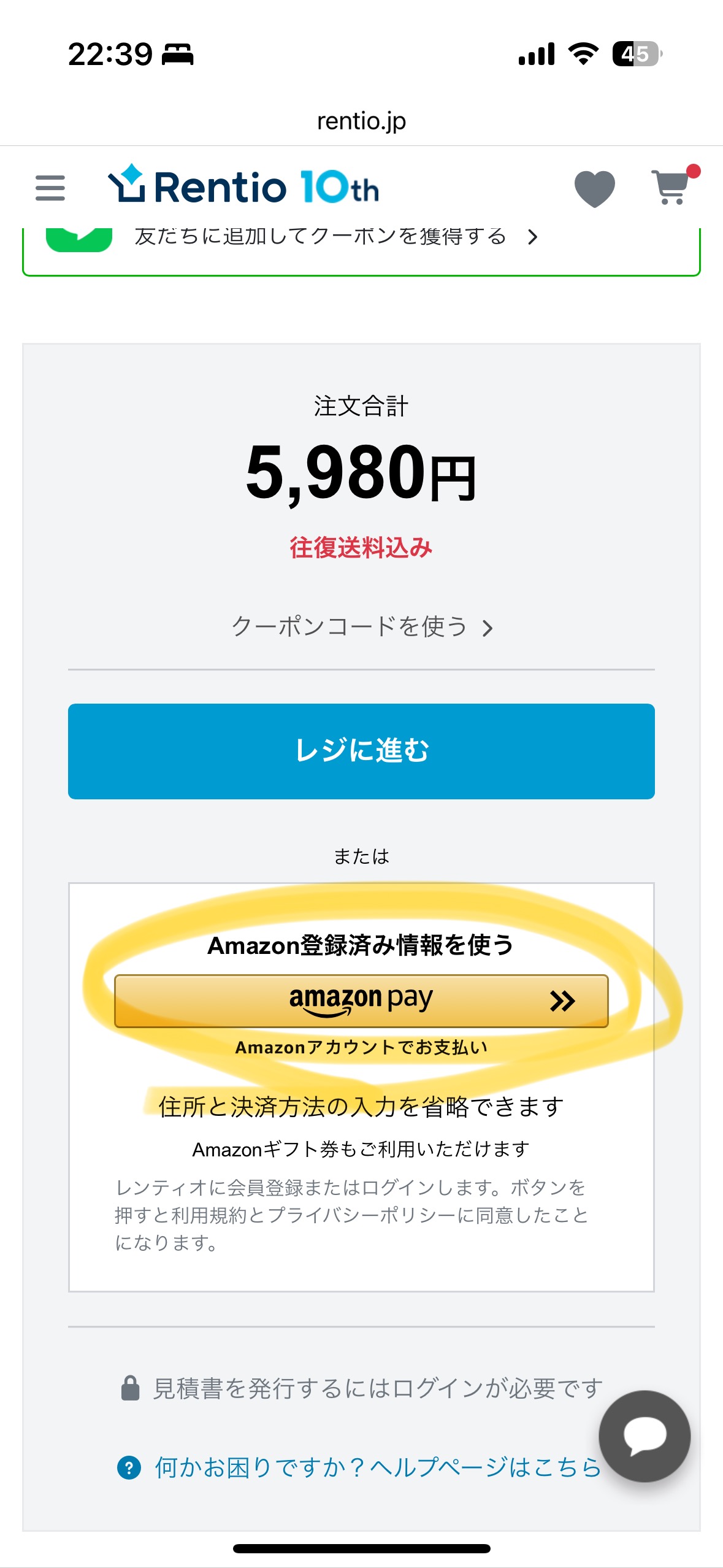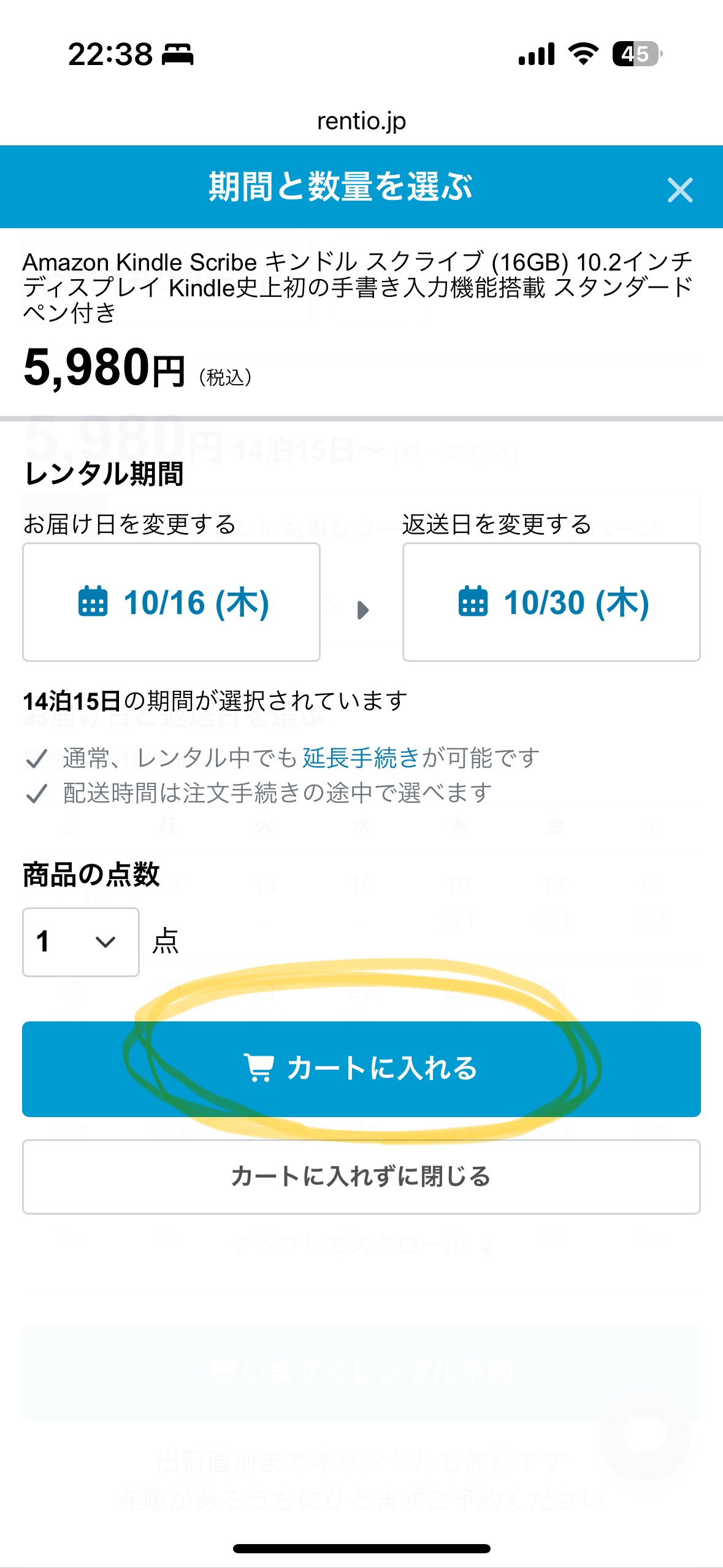 「カートに入れる」をタップ。