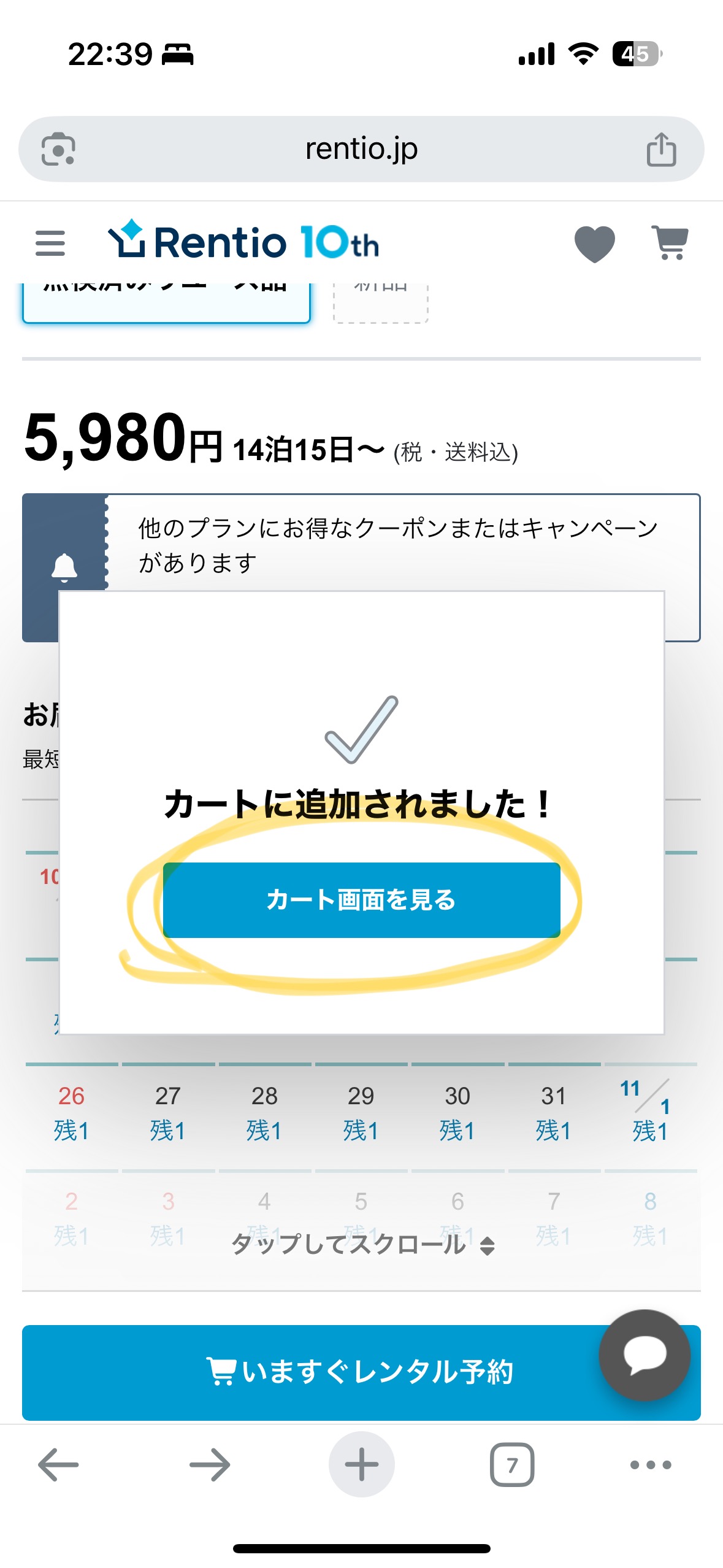 「カート画面をみる」をタップ。
