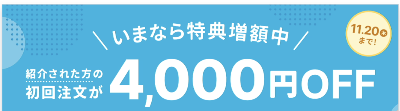 クーポンあり|【〜11/20まで】初めての利用なら4,000円オフ!